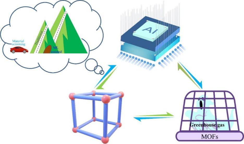 该综述论文全面总结了近年来机器学习作为辅助工具筛选高性能MOFs用于温室气体去除的研究进展和展望,系统提供了机器学习、MOFs、温室气体去除三者的关系(图1),其中涵盖了机器学习在筛选MOFs时的一般工作流程和一些常见算法的介绍,重点总结了机器学习辅助筛选高温室气体去除性能的MOFs的应用。该工作有望为室内家居污染物的去除提供了新的解决方案,同时为绿色家居材料的设计指明了发展方向。