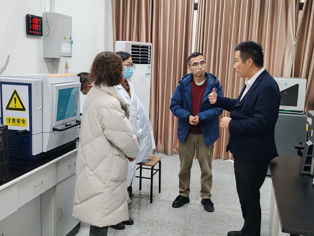 徐爱俊实地查看了分析测试中心的实验室建设和仪器设备运行情况,与仪器管理老师和测试学生就设备运行状况、操作规范与使用体验等进行现场交流。张晓春汇报了中心建设过程、仪器设备配置、管理运行模式和未来规划等情况。