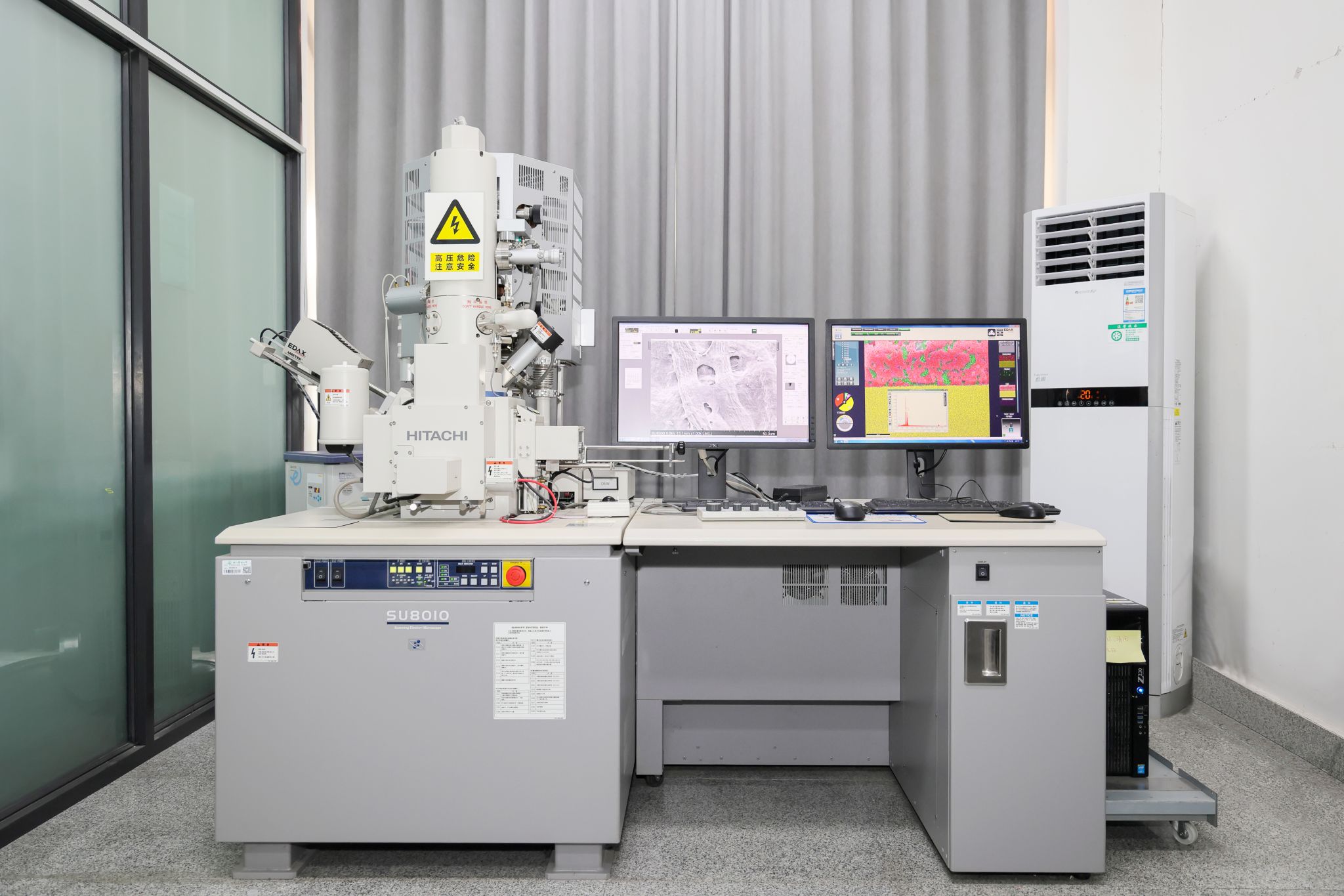 该仪器具有超高分辨率,能观察各种固态样品表面形貌的二次电子像、背散射电子像,配备超大窗口SDD探头的高性能X射线能谱仪,同时进行样品表层的微区点、线、面元素定性、半定量及定量分析,具有形貌、化学组分综合分析能力。与一般钨灯丝扫描电镜相比,它能以更高的分辨率观察固体样品表面显微结构和形貌,对金属、无机非金属、高分子、纳米等材料的表面超微结构形貌进行分析。
